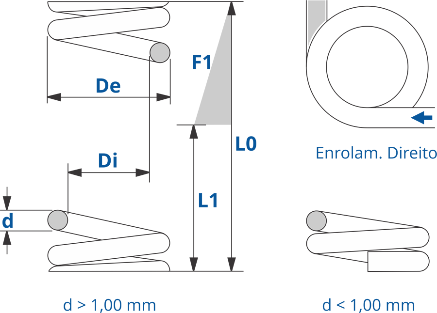 Observação: Por padrão, nossas molas são fabricadas com sentido de